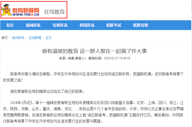 第十一届锦宏高考职业规划精英论坛于2018年2月4日召开,得到了腾讯、百度、搜狐、中华网、凤凰网等多家全国权威媒体的报道和认可。