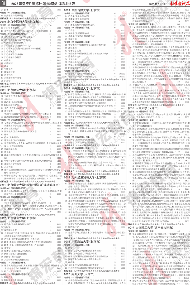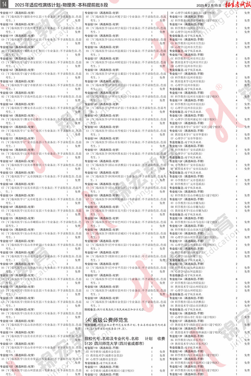 【物理类】2025年四川新高考综合改革适应性演练招生计划