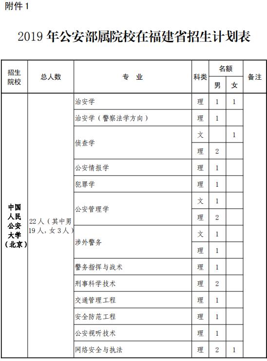 福建省2019年公安普通高等院校公安类、司法警察类专业招生办法