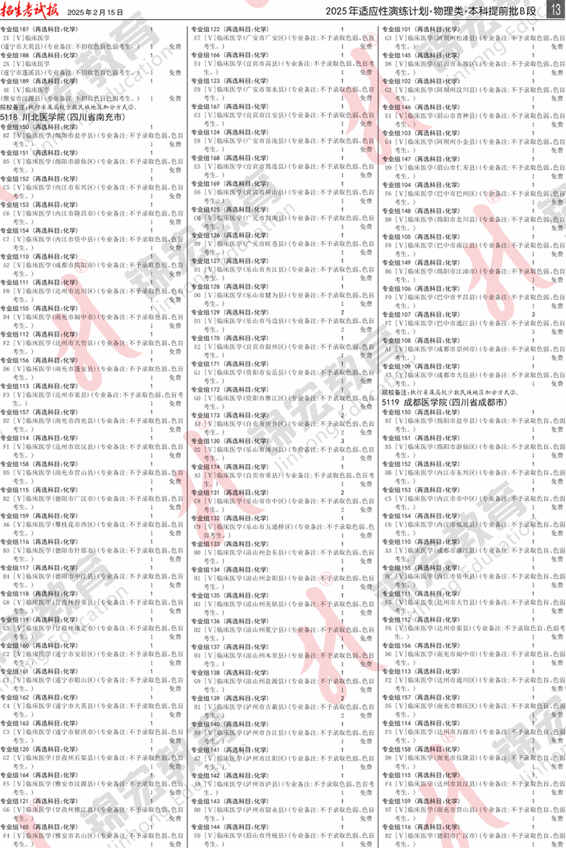 【物理类】2025年四川新高考综合改革适应性演练招生计划