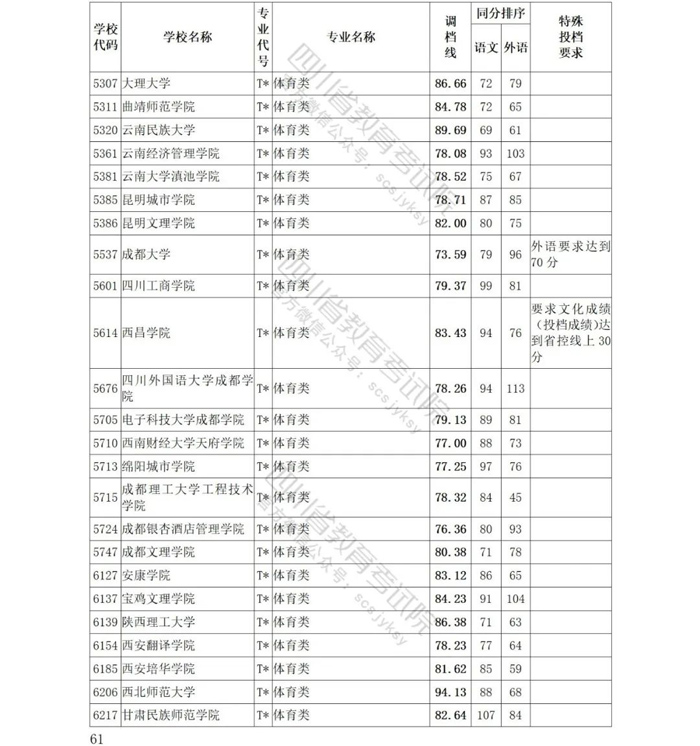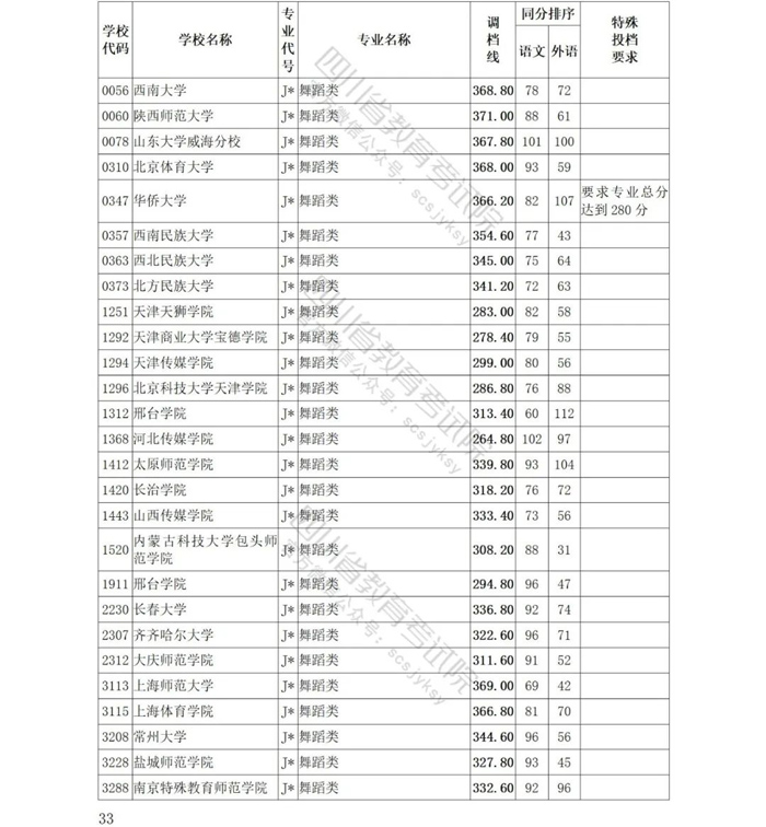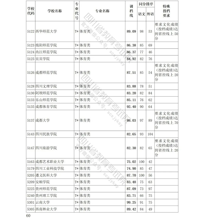 四川省艺术体育类招生继续实行平行志愿投档模式,在投出的档案中,艺术类27233人、体育类7727人。投档后执行计划整体满足率为99.23%,其中艺术类计划满足率为99.01%、体育类计划满足率为100%。