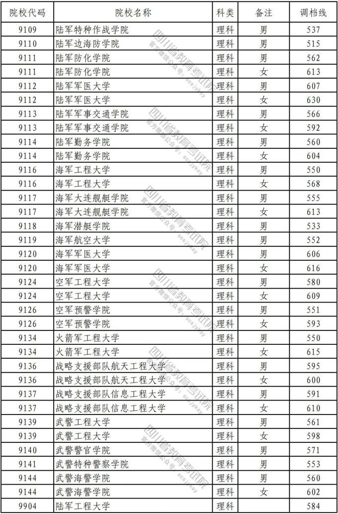 三是军队院校。今年在川招生的军校有25所,招生计划为837名,一志愿投档后计划满足率97.85%。其中,国防科技大学在本批次文理科调档线都居于前十院校之列。