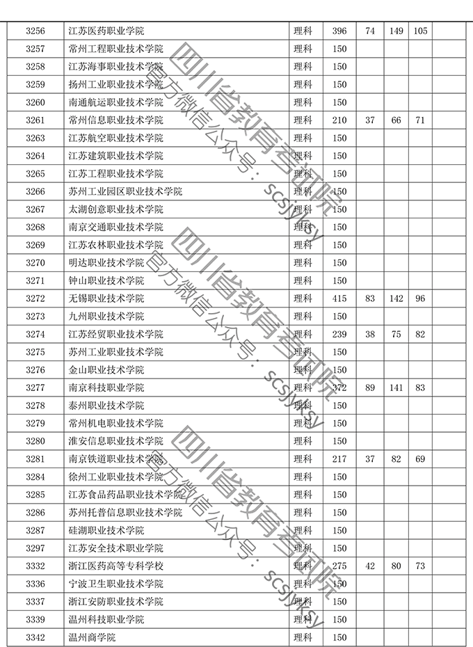 四川:2019年普通高等学校在川招生专科录取院校调档线