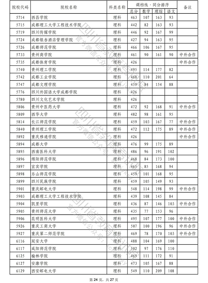 四川:2022年普通高校在川招生本科二批次院校录取调档线